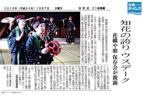昨年、「知花花織」が国(経済産業省)の伝統的芸能工芸品に指定されましたので、同関連記事の紹介を致します。